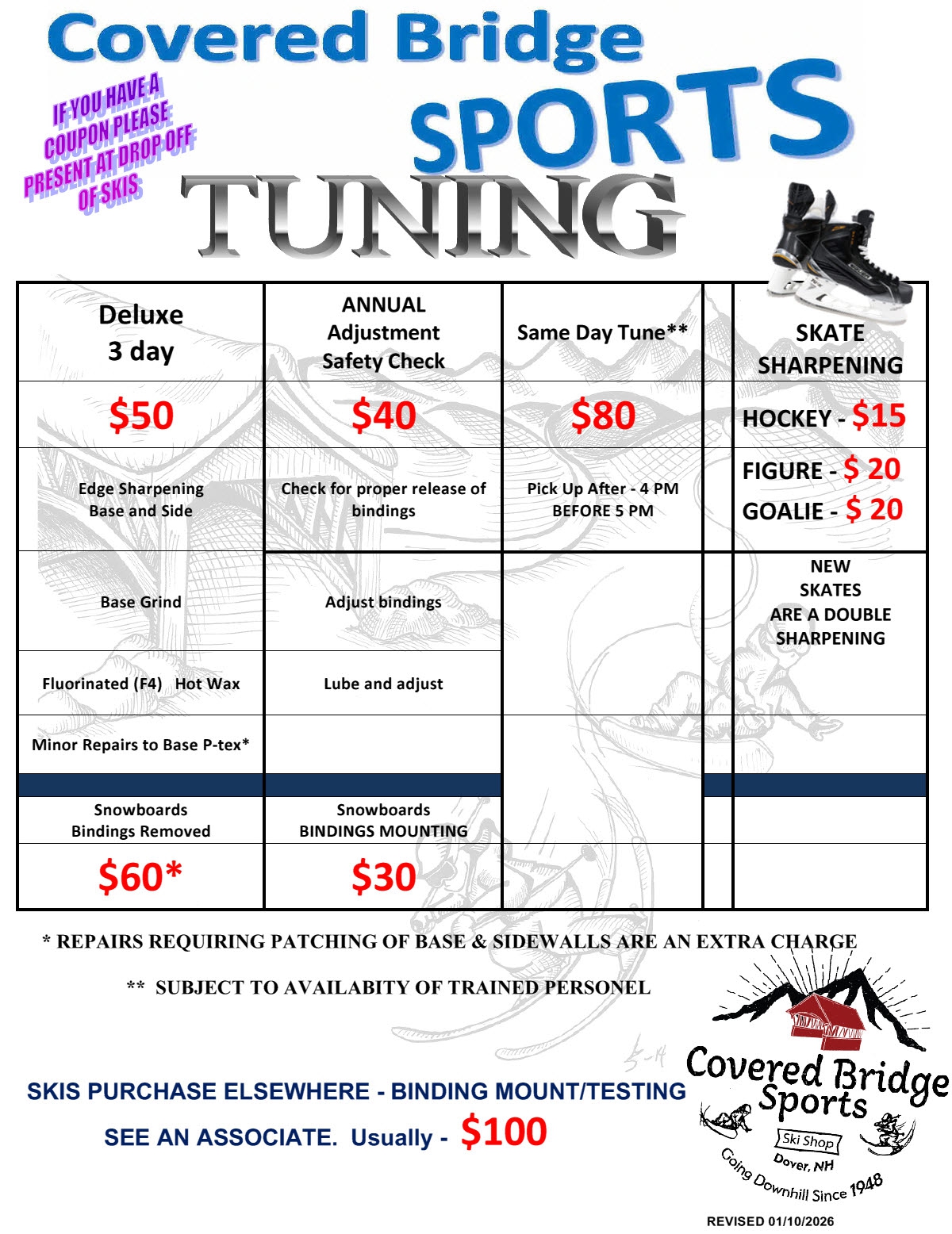 Skis take a beating on the slopes, harder snow and ice wear edges and wax down faster. Carving and skidding will detune the edges. We usually tune them after 4-6 days of fun.